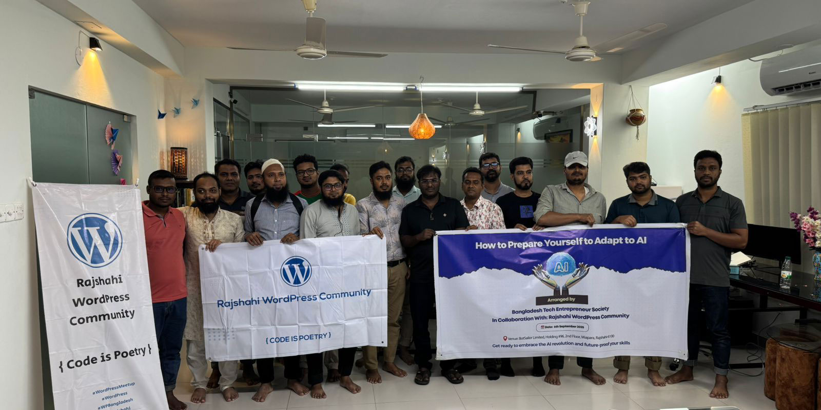 আজ (০৬/০৯/২০২৫)আর্টিফিশিয়াল ইন্টেলিজেন্স বা এআই প্রযুক্তির ক্রমবর্ধমান বিকাশ এবং আমাদের ব্যক্তি ও ব্যবসায়ীক জীবনে কিভাবে গ্রহন করবো এ বিষয়কে কেন্দ্র করে Bangladesh Tech Entrepreneur Soceity এবং Rajshahi Wordpress Community উদ্যোগে How to prepare yourself to adapt to Ai শীর্ষক সেমিনারের আয়োজন করা হয়। সেমিনারে দুই প্রতিষ্ঠানের বিভিন্ন সদস্যগন অংশগ্রহন করেন। সেমিনারটি Bot Sailor অফিস প্রাংগনে অনুষ্ঠিত হয়।